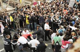Os manifestantes do protesto Occupy Wall Street (algo como "Ocupem Wall Street", o coração financeiro nova-iorquino) cruzavam a ponte do Brooklin quando foram detidos pela polícia, a maioria por causar tumulto e atrapalhar o trânsito.